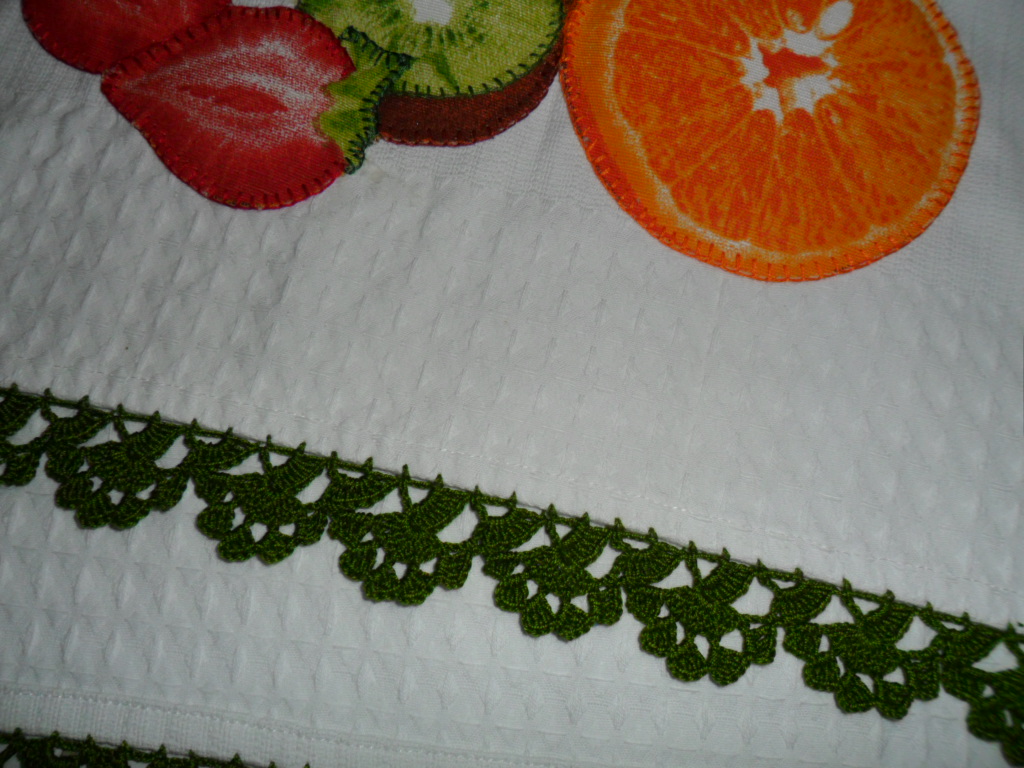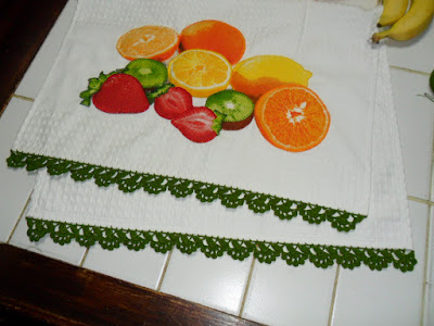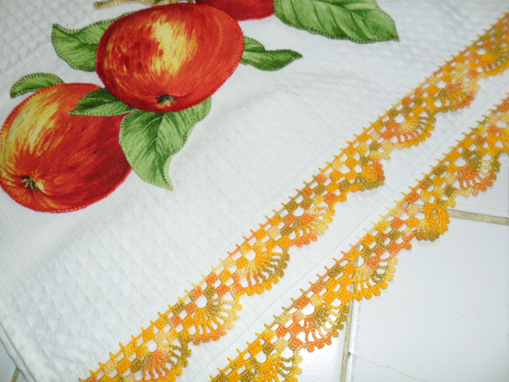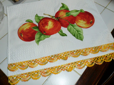 Já fiz alguns conjuntos de Panos de mãos e loiça, para cozinha, este é um dos meus preferidos, já que adoro romãs.